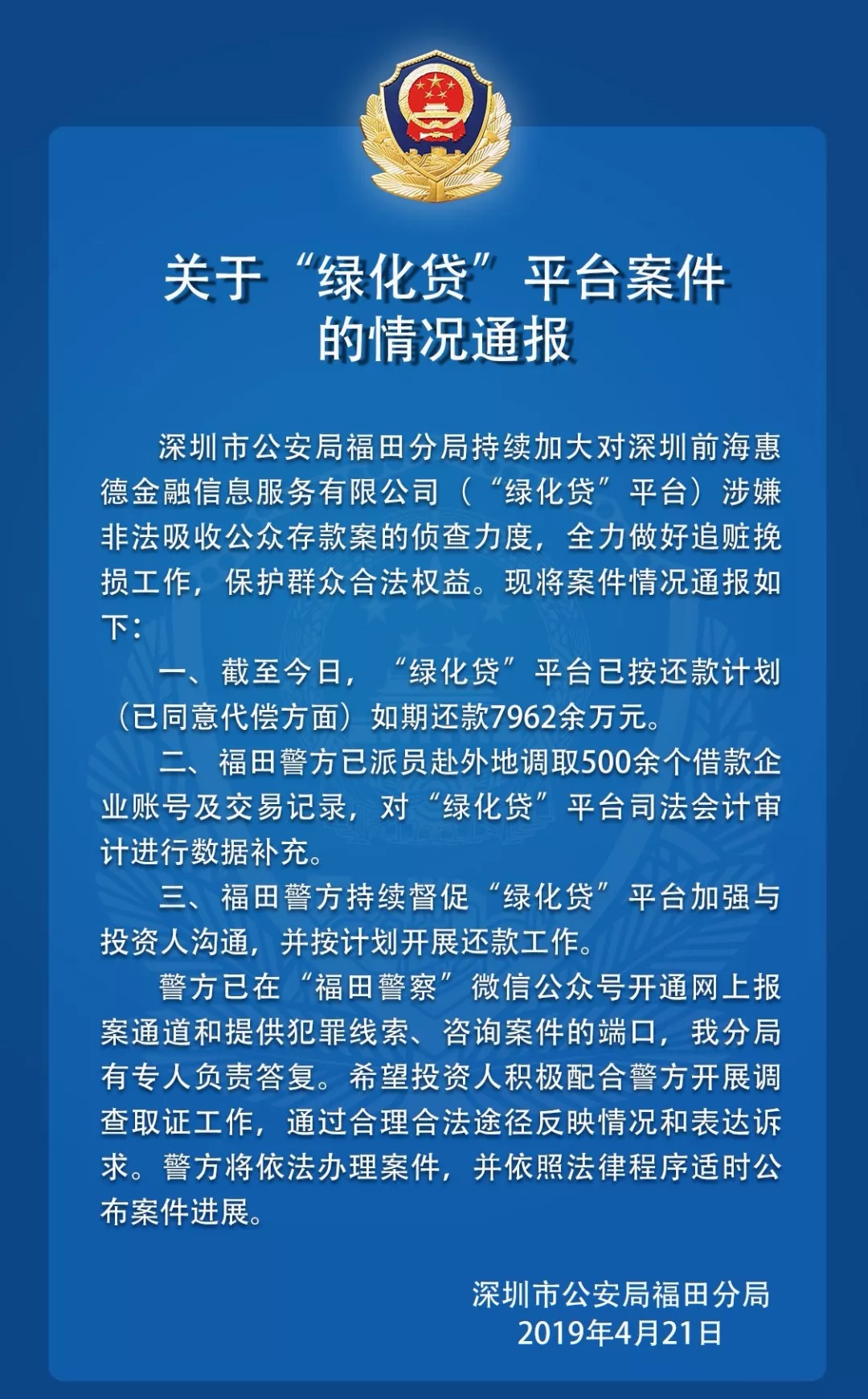 關(guān)于“綠化貸”平臺的案件情況通報