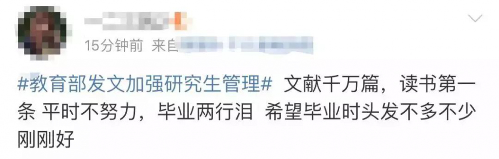 此前,教育部印發(fā)的《關(guān)于進(jìn)一步規(guī)范和加強(qiáng)研究生培養(yǎng)管理的通知》中要求"對(duì)不適合繼續(xù)攻讀學(xué)位的研究生要落實(shí)及早分流,加大分流力度"。