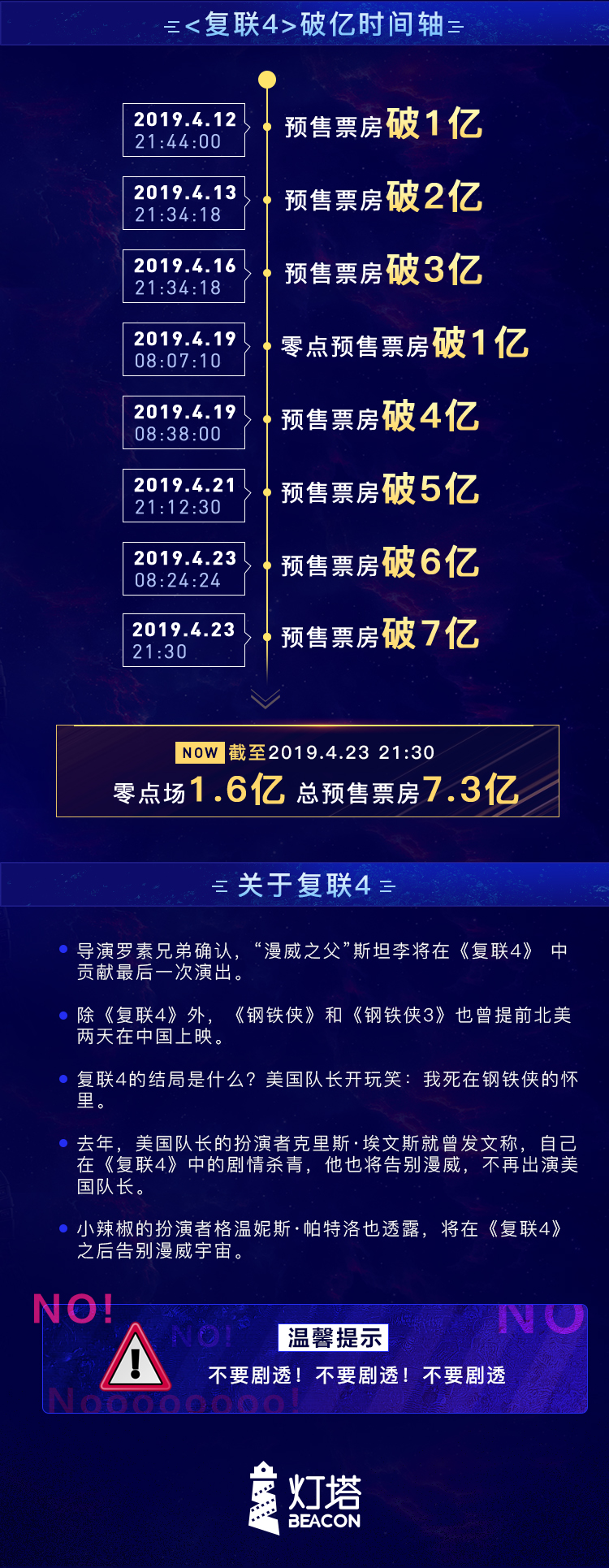 深圳新聞網(wǎng)4月24日訊(記者 陳婕)相信你的朋友圈已經(jīng)被“復(fù)聯(lián)4”占據(jù)了領(lǐng)地,而小記認(rèn)識(shí)的英雄還湊不齊一桌麻將。截至24日00點(diǎn),《復(fù)仇者聯(lián)盟4》預(yù)售已破7億!超《美國(guó)隊(duì)長(zhǎng)2》總票房,在《復(fù)聯(lián)4》的預(yù)售峰值期,淘票票預(yù)售市場(chǎng)占比過(guò)半。