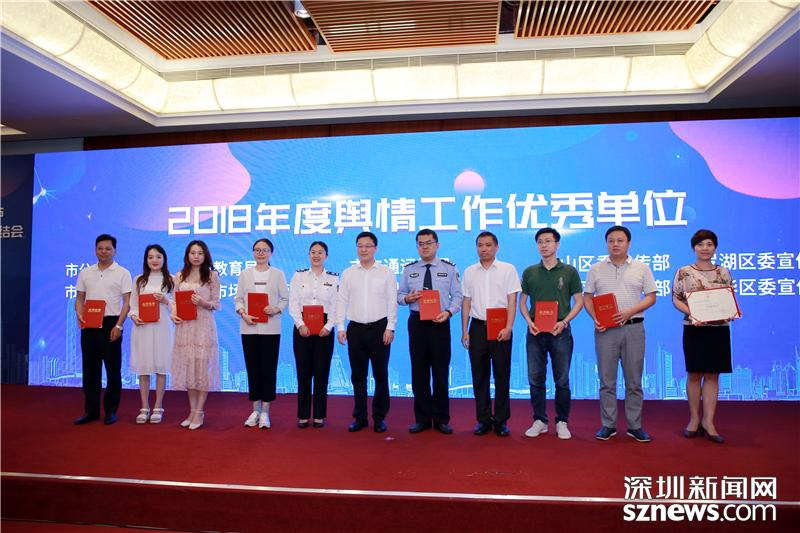 “2018年度深圳市輿情工作優(yōu)秀單位”獲獎(jiǎng)代表領(lǐng)獎(jiǎng)合影