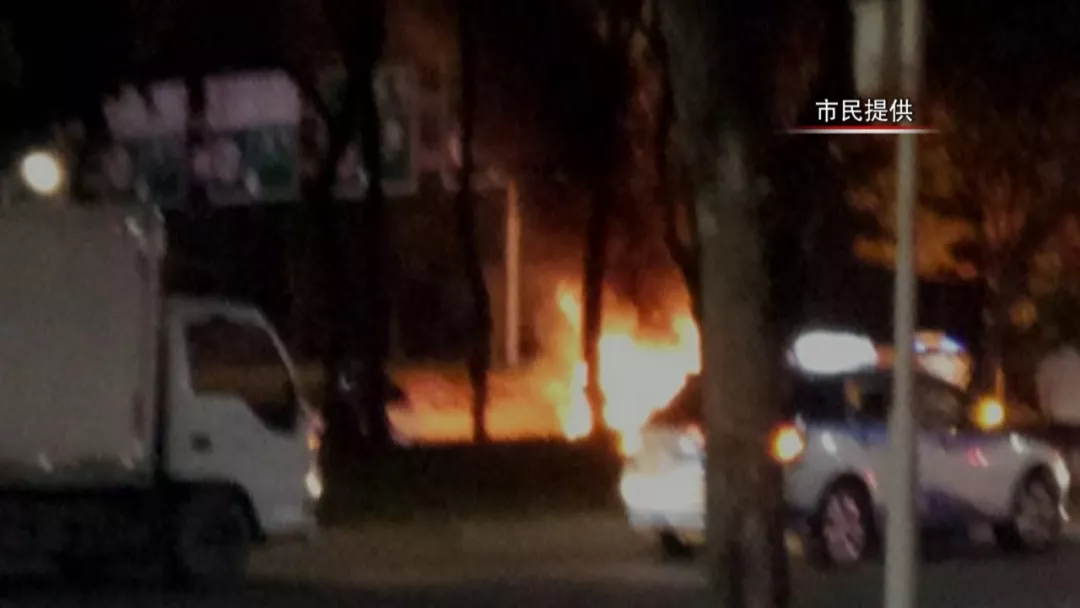 一輛電動出租車突然起火了