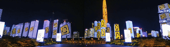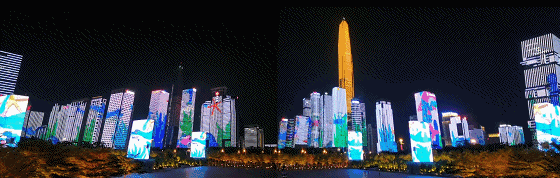 只見線條在樓宇屏幕上來回切換