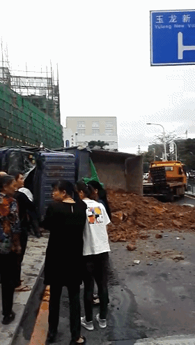 羅湖一渣土車道路側(cè)翻,車頭已嚴重變形!目擊者:有行人被壓