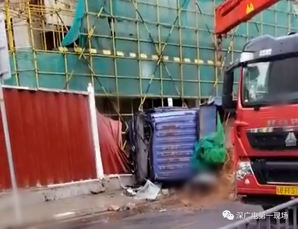 深廣電第一現(xiàn)場2019年5月5日訊 4日下午5點左右有觀眾在粉絲群爆料稱在深圳羅湖金湖路上從觀眾提供的現(xiàn)場視頻可以看到這輛渣土車的車頭已經(jīng)嚴(yán)重變形。