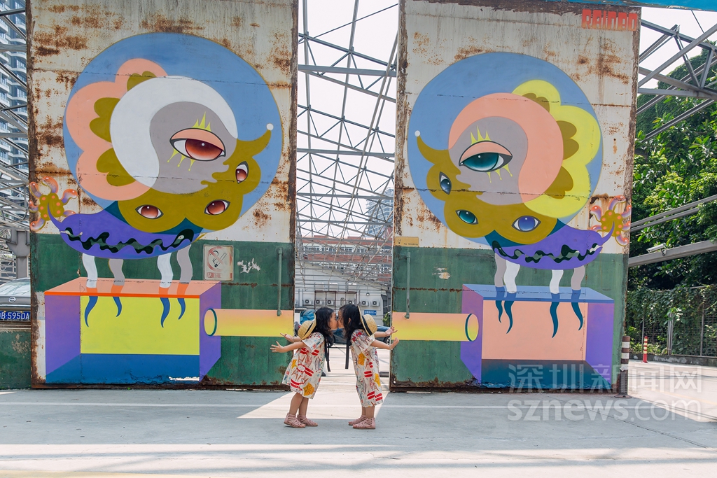 在城市公共空間中,涂鴉藝術(shù)不僅是一種重要的人文景觀,同時(shí)還能給人一種視覺享受,使單一的生活變得富有色彩。來自中國香港的全職藝術(shù)家彭怡擅長用涂鴉進(jìn)行故事創(chuàng)作,帶來作品《雙觀》,以左右對(duì)稱相望的停車場守護(hù)神的形象感染車主與行人,傳達(dá)平穩(wěn)冷靜的力量。