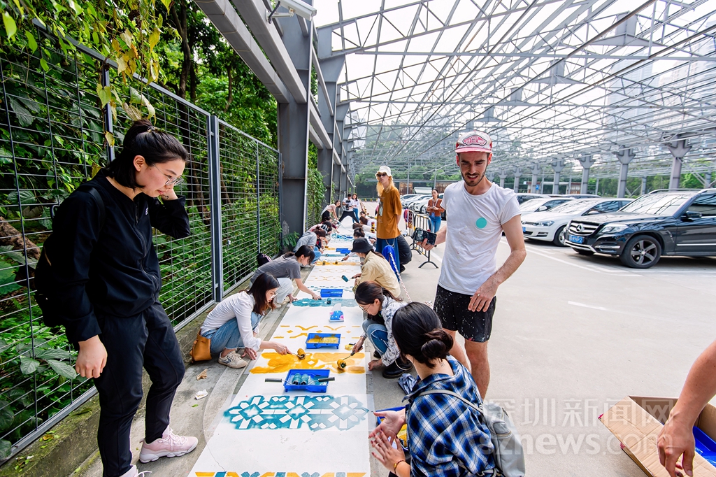 開幕前,藝術(shù)家邀請(qǐng)公眾與志愿者共同完成花磚涂鴉作品《安全地帶》(主辦方供圖)