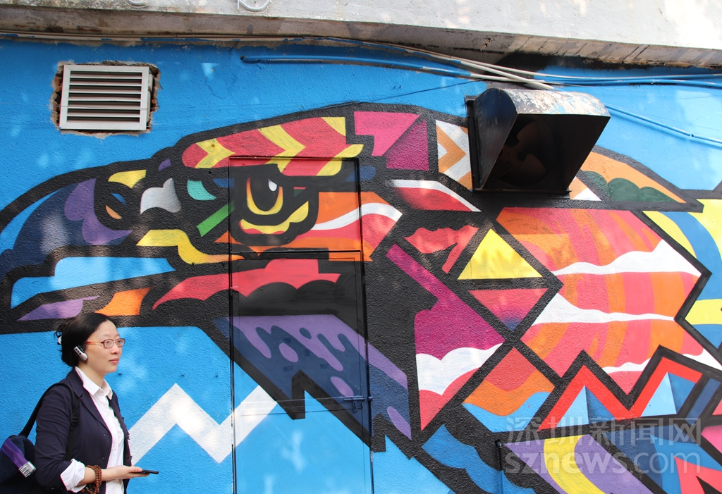 來自泰國的平面設(shè)計師和街頭藝術(shù)家Rukkit Kuanhawate,常以抽象幾何設(shè)計畫出動物及人像涂鴉作品,更曾與多個國際潮牌跨界合作。此次于深圳帶來作品《鷹與鼠》,以詼諧幽默的方式提醒車主安全停車。