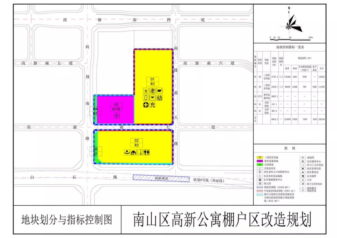 ▲南山區(qū)高新公寓棚戶區(qū)改造規(guī)劃地塊劃分與指標控制圖