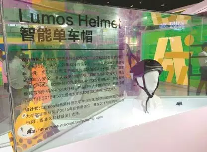 文博會現(xiàn)場展示的智能單車帽。晶報記者 吳欣/ 攝