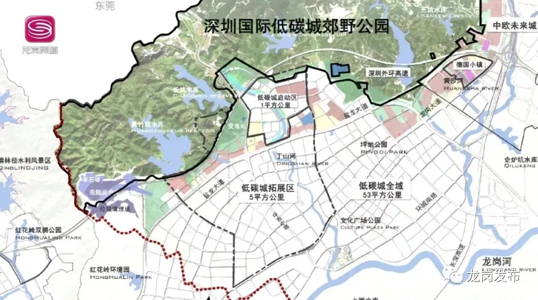 國(guó)際低碳城郊野公園項(xiàng)目位于國(guó)際低碳城北部區(qū)域,北側(cè)為東莞市,東北側(cè)為惠州市,占地15.18平方公里。