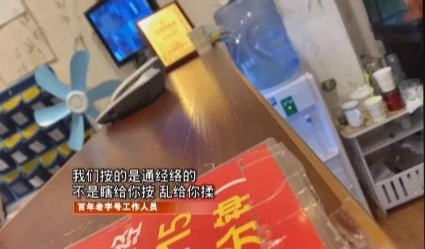 隨后記者被安排到按摩室,此前工作人員一再?gòu)?qiáng)調(diào)用的是老字號(hào)的藥油,然而在按摩室里,按摩師卻擅自使用了另一種藥。記者留意到,這位按摩師推薦的中藥膏藥,并非產(chǎn)自此牌子。