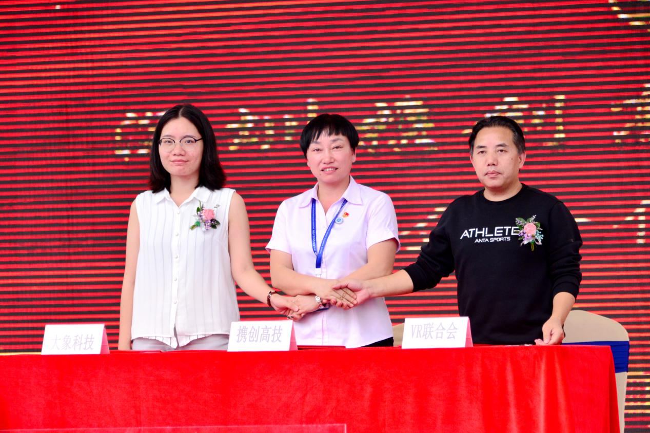 揭牌儀式上學(xué)校分別與深圳市虛擬現(xiàn)實(shí)產(chǎn)業(yè)聯(lián)合會、深圳市電子競技運(yùn)動協(xié)會進(jìn)行了校企合作簽約。