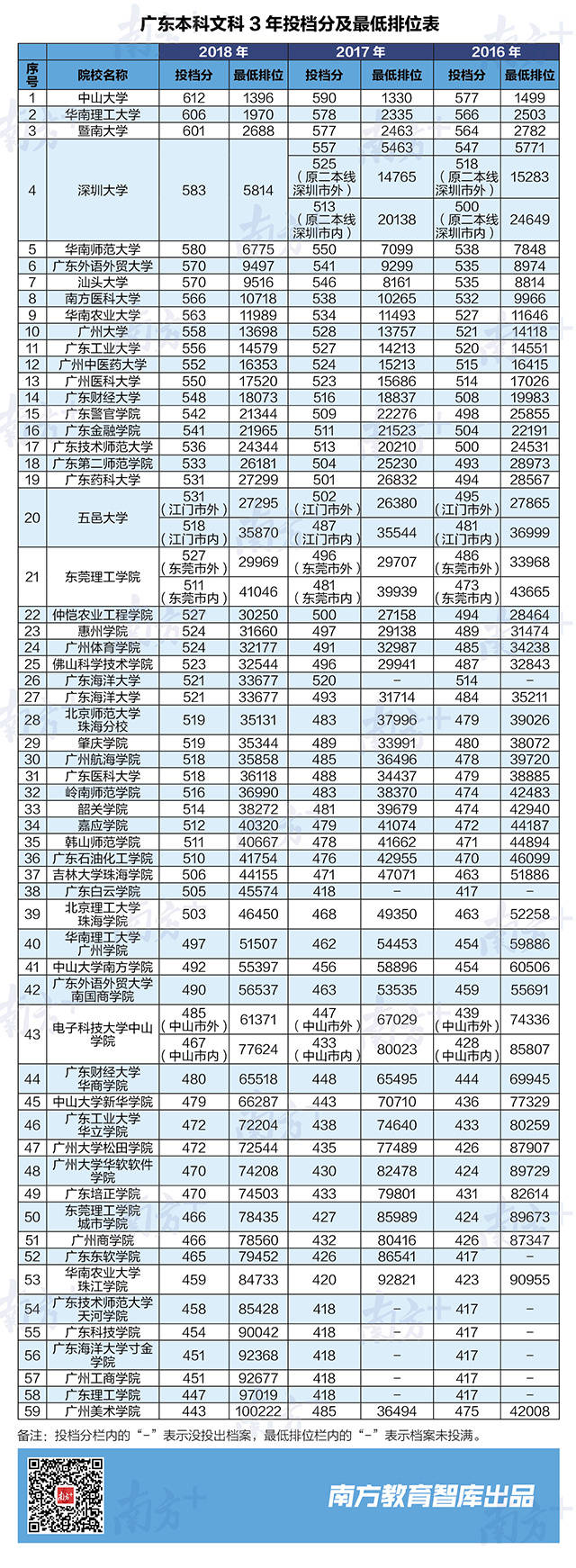 總體來看,廣東文科專業(yè)招生數(shù)量相對穩(wěn)定,且一些不適應社會發(fā)展的文科專業(yè)正逐步調整,因此2018年文科一半以上的高校最低排位較2017年上升,文科生要考個好大學,需要更努把力了。例如華南理工大學、華南師范大學、廣州大學3所高校最低排位比去年有所提升,分別提高365、324和59。