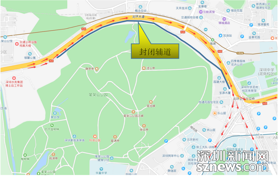 @深圳司機,夜間北環(huán)上步立交段東行主輔道輪流封閉