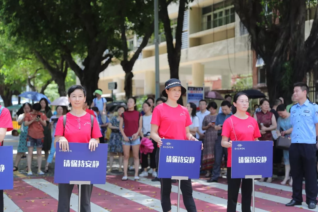考試開始和結(jié)束時(shí),在深圳實(shí)驗(yàn)學(xué)校中學(xué)部的考場外,家長們自發(fā)組織的義工服務(wù)隊(duì)也正在有序地維護(hù)著考場外的秩序。通心嶺派出所積極與本次家長義工服務(wù)隊(duì)的成員溝通,在考試結(jié)束后散場時(shí)能夠快速緩解人流,保證考場周邊的秩序。