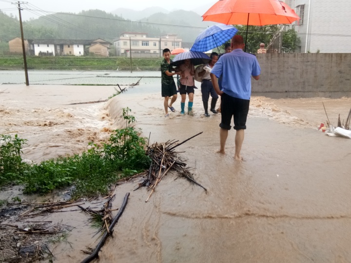 浰源鎮(zhèn)洪浰河斜水橋洪水已過橋面,不能通行了。