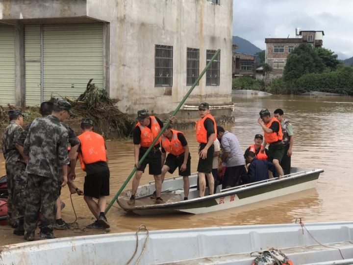 10日10時(shí),受暴雨影響,連平縣上坪鎮(zhèn)最大降雨量達(dá)300毫米,導(dǎo)致上坪中心小學(xué)附近100多名群眾被洪水圍困。武警河源支隊(duì)緊急出動(dòng)46名官兵攜帶沖鋒舟、救生衣等救援器材,分兩路趕赴現(xiàn)場(chǎng)救援,救援部隊(duì)開進(jìn)過程中遇受災(zāi)群眾多次求救,先后救出8名危難群眾。