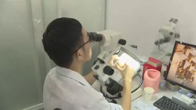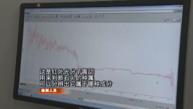 在記者說明來意后,工作人員接過單先生的石頭進入實驗室,首先用小電筒和寶石顯微鏡,進行外觀檢測。然后將石頭放到這臺,叫“傅里葉變換紅外光譜”的儀器,檢測它的分子結(jié)構(gòu)。