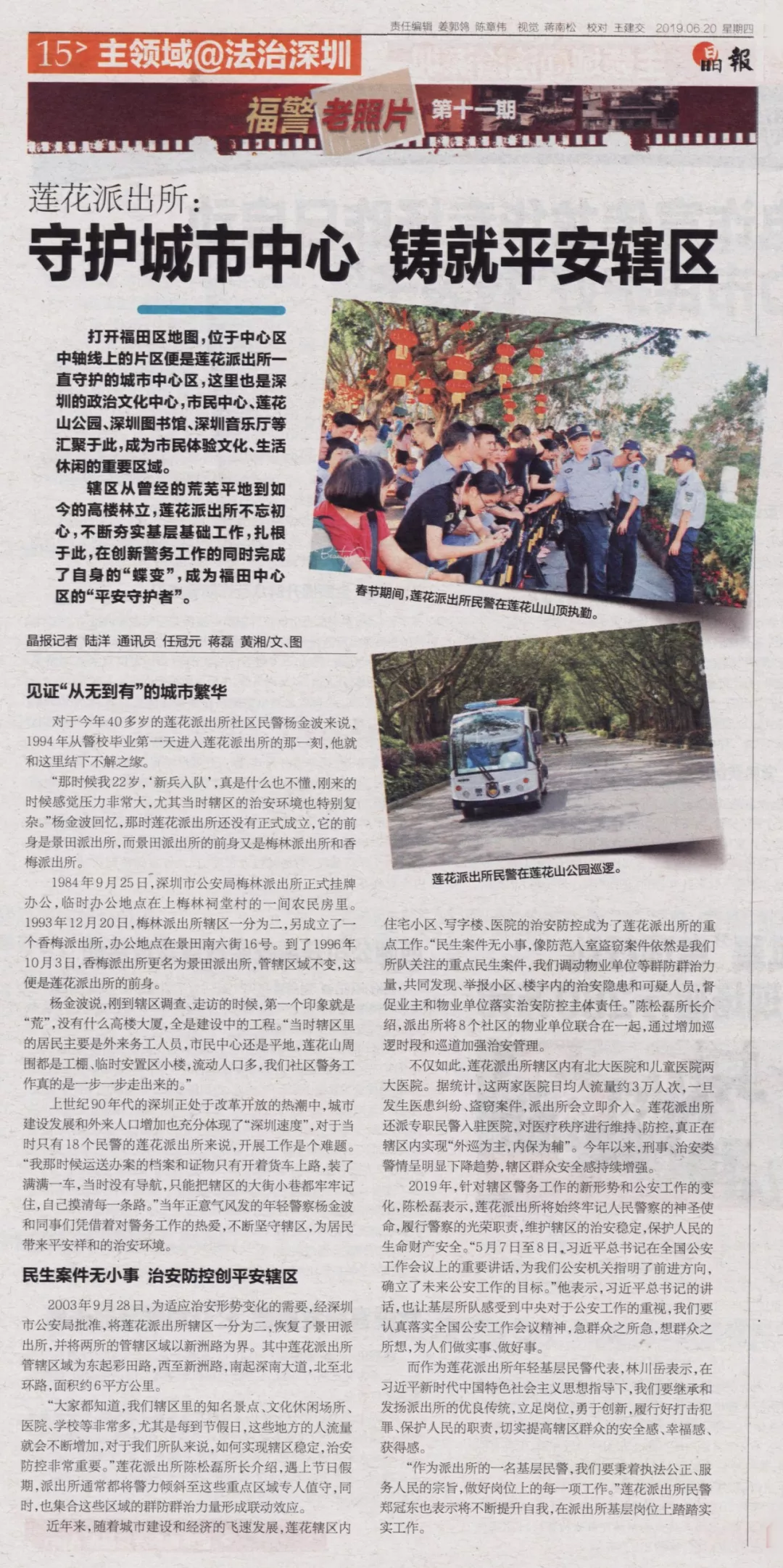 “那時(shí)候我22歲,‘新兵入隊(duì)’,真是什么也不懂,剛來(lái)的時(shí)候感覺(jué)壓力非常大,尤其當(dāng)時(shí)轄區(qū)的治安環(huán)境也特別復(fù)雜?!睏罱鸩ɑ貞?那時(shí)蓮花派出所還沒(méi)有正式成立,它的前身是景田派出所,而景田派出所的前身又是梅林派出所和香梅派出所。