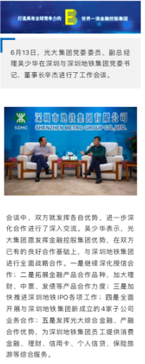 它發(fā)文稱:光大集團正在與深圳地鐵加快推進深圳地鐵IPO各項工作