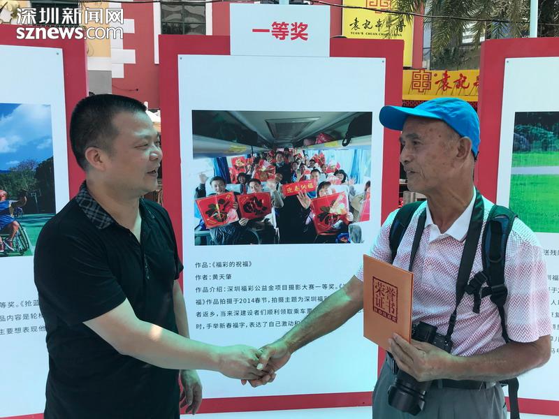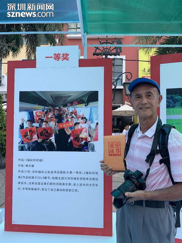 “我從報(bào)紙上看見深圳福彩舉辦的返鄉(xiāng)活動(dòng),覺得這個(gè)做公益獻(xiàn)愛心的活動(dòng)讓我很感動(dòng)。我想通過我的照片來彰顯深圳是一個(gè)大愛的城市,來讓大家看到深圳福彩的愛心宗旨。”72歲的黃天肇憑借《福彩的祝?!纷髌窐s獲本次大賽一等獎(jiǎng)。作為資深的攝影愛好者,他從深圳福彩舉辦“愛心福彩資助來深建設(shè)者春節(jié)返鄉(xiāng)”活動(dòng)開始,用相機(jī)記錄了十余年,“那個(gè)時(shí)候我都是用的傻瓜相機(jī)拍,獲獎(jiǎng)的作品就是我用傻瓜相機(jī)拍的,直到這兩年才開始用數(shù)碼相機(jī)。”對(duì)于此次展覽,黃天肇認(rèn)為深圳福彩組織選出的98張照片,承載著深圳對(duì)孤寡老人、弱勢(shì)群體、特困戶的關(guān)心,彰顯了深圳人的大愛,也激發(fā)市民通過購彩的方式奉獻(xiàn)愛心,他表示會(huì)一直用照片銘記這些珍貴的記憶。