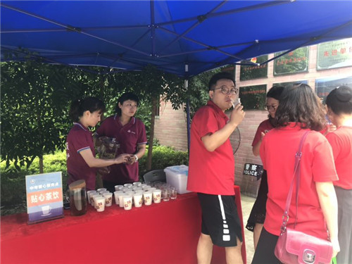 ▲深圳高級中學航天物業(yè)布置的中考愛心服務點