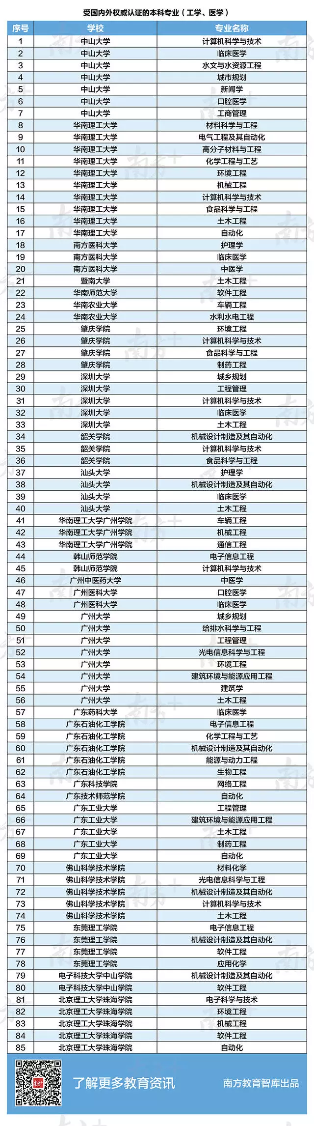 統(tǒng)計工學類和醫(yī)學類專業(yè)發(fā)現(xiàn),廣東共有85個專業(yè)獲得國內外認證,其中華南理工大學10個、廣州大學8個、中山大學7個,位居全省前3位,理科考生可以作為參考。