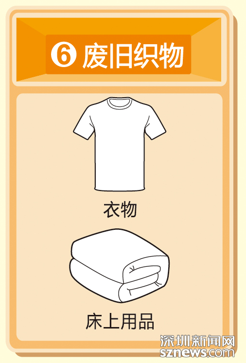 注:破襪子、舊內(nèi)衣褲、拖布及污損嚴重的織物應投放至其他垃圾收集容器。