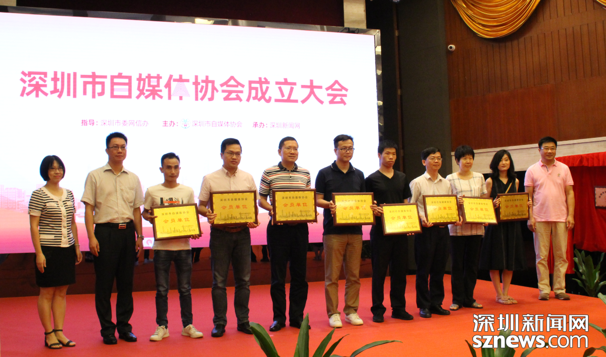 深圳市委網信辦副主任王遠輝、深圳報業(yè)集團、市社會組織管理局有關同志為市自媒體協(xié)會理事會、監(jiān)事會成員單位代表授牌
