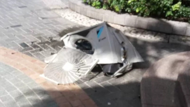 7月1日,深圳再現(xiàn)高空墜物!福田區(qū)萬科金色家園小區(qū)一臺空調(diào)主機(jī)從11樓墜下