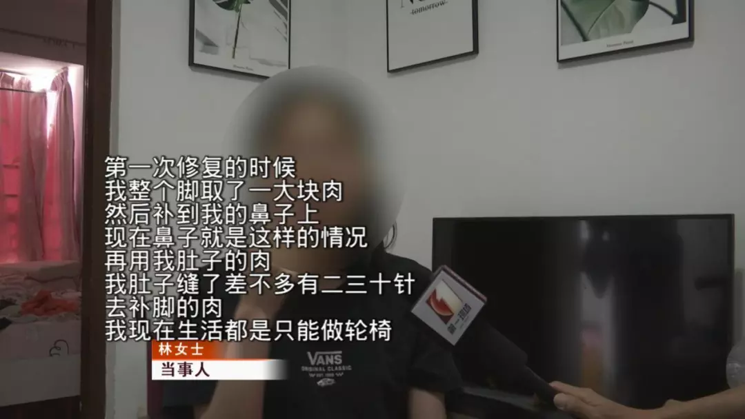 她去南山一家美容醫(yī)院進(jìn)行肋軟骨隆鼻手術(shù),手術(shù)做完,她的鼻小柱就壞死了