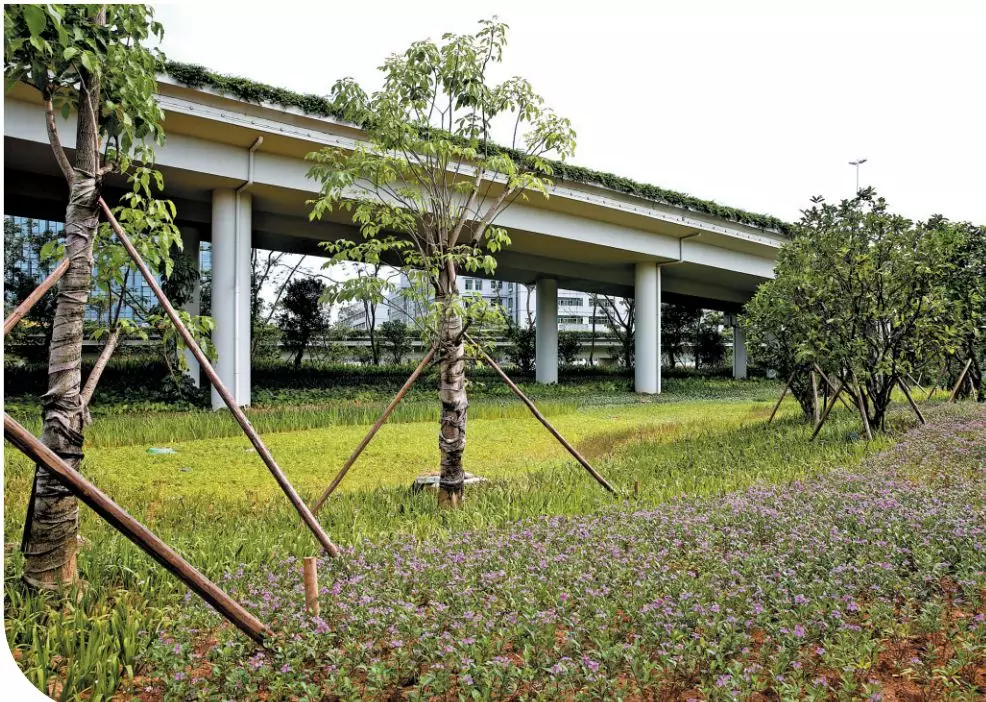 燕羅街道采用生態(tài)式種植模式,以“兩軸、四帶、四片、四面”為設(shè)計思路,通過增加樹形優(yōu)美的“大樹+地景形式”打造重要節(jié)點,將喬、灌、草等不同植物交錯種植,搭配疏密有別、宛如千姿百態(tài)的生態(tài)景觀長廊,“驚艷”展現(xiàn)在途經(jīng)市民眼前。