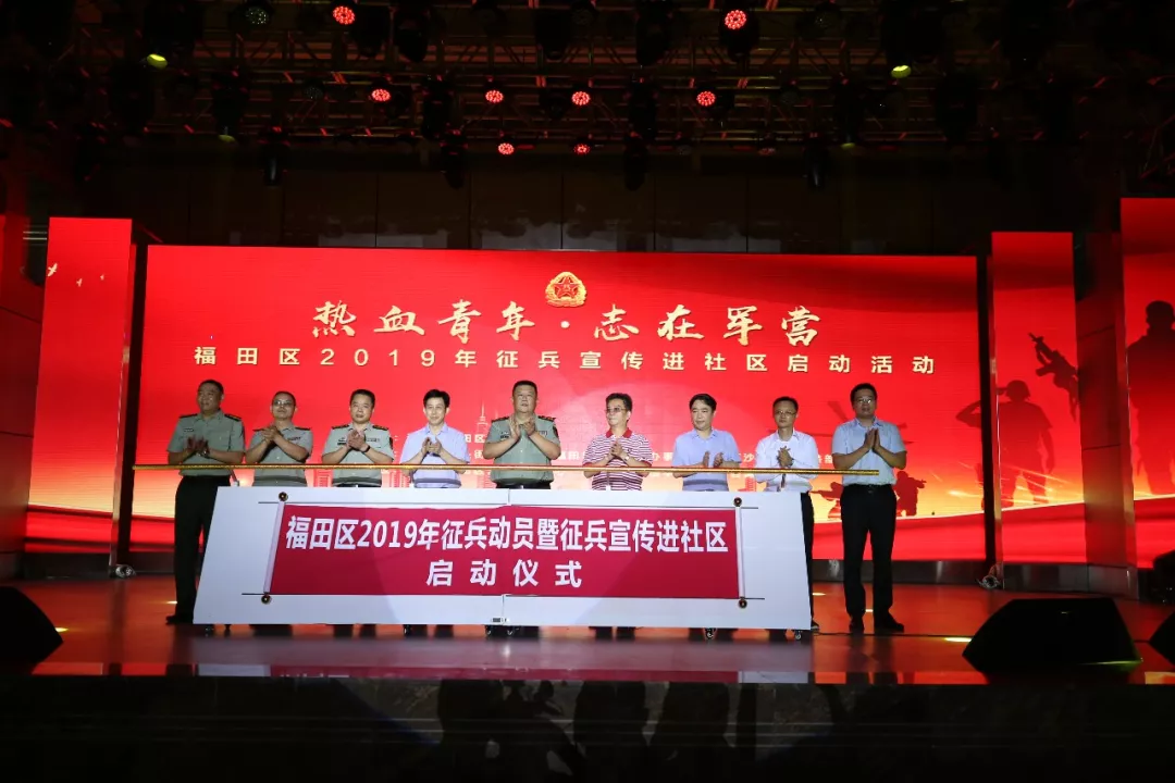 7月5日晚,由福田區(qū)人民武裝部主辦、沙頭街道黨工委辦事處承辦、福田區(qū)文體中心協(xié)辦的“熱血青年·志在軍營”福田區(qū)2019年征兵宣傳進(jìn)社區(qū)活動(dòng)啟動(dòng)儀式在福田區(qū)沙頭街道沙嘴社區(qū)文化廣場舉行。本次活動(dòng)作為征兵宣傳進(jìn)社區(qū)系列活動(dòng)的首場,正式吹響了福田區(qū)征兵工作的號角。