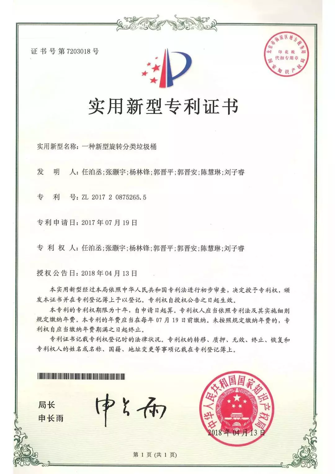 智能垃圾桶獲國(guó)家專(zhuān)利
