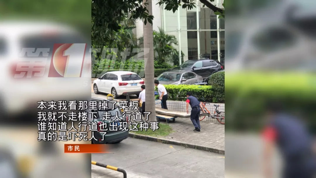 而且,這已經(jīng)不是第一起高空墜物事件了。前不久,一塊砧板就從某戶人家陽(yáng)臺(tái)墜落到地面,所幸只是擦傷了一位路人。