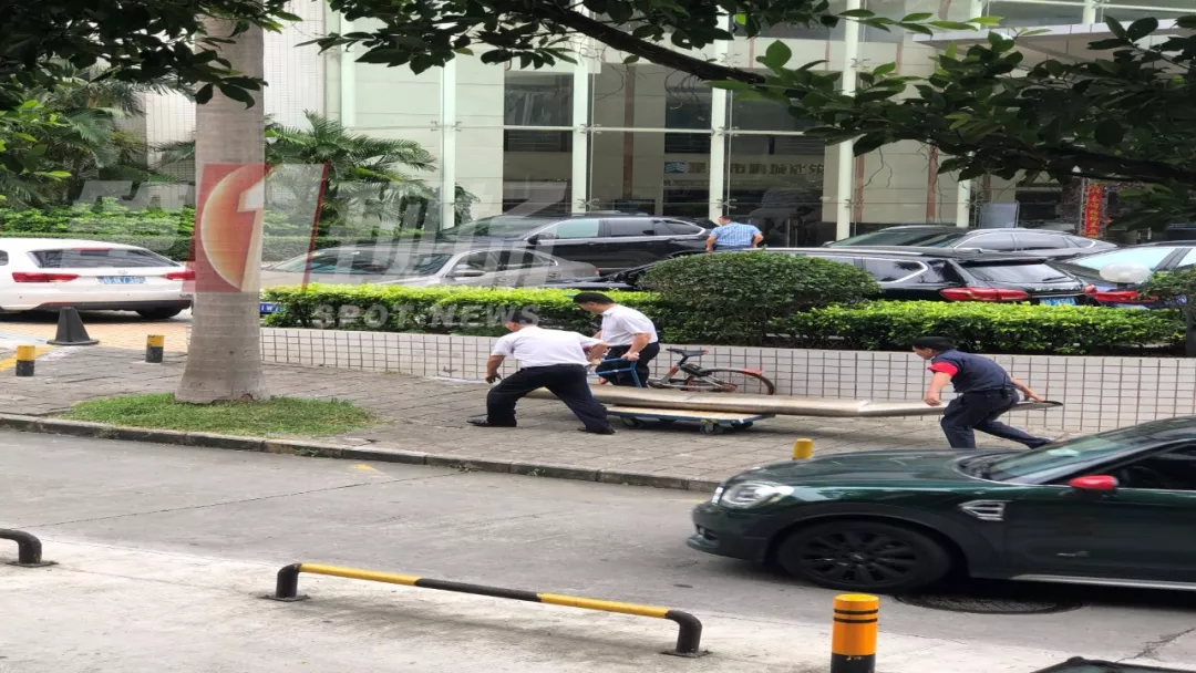 據(jù)目擊者介紹,在羅湖帝豪金融大廈附近,一根建筑鋼筋突然從高空墜落,砸在了路邊,連水泥地面都被鋼筋戳穿一個(gè)洞。