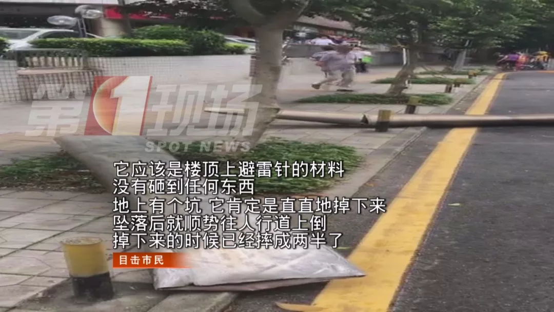 ▲高空墜落的鋼筋,長(zhǎng)約一米