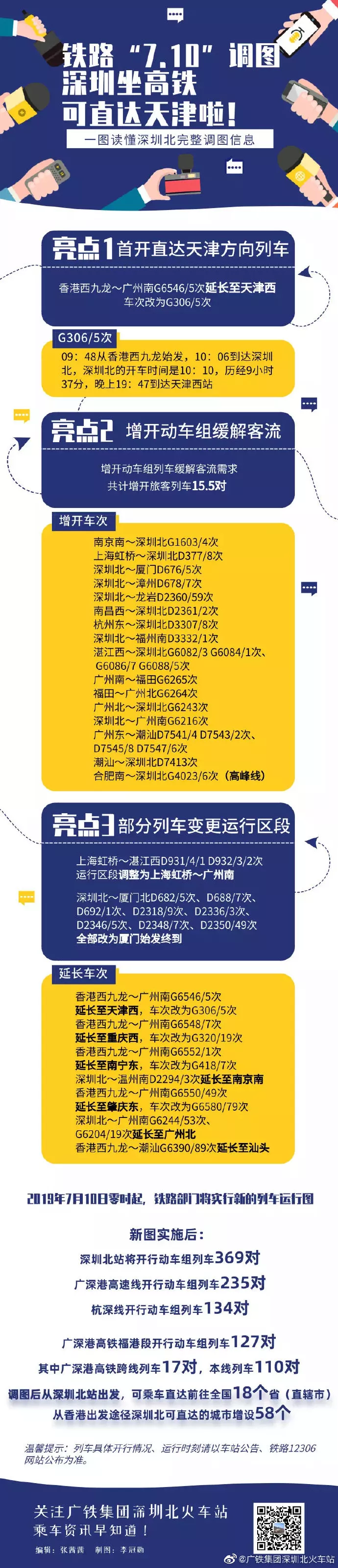 根據(jù)新的運(yùn)行圖安排,深圳北站將開行動(dòng)車組列車369對,廣深港高速線開行動(dòng)車組列車235對;杭深線開行動(dòng)車組列車134對?!?·10”調(diào)圖后,深圳北站首開前往天津方向列車,屆時(shí)從深圳北站出發(fā),可乘車直達(dá)前往全國18個(gè)省(直轄市);從香港出發(fā)途徑深圳北可直達(dá)的城市增設(shè)58個(gè)。