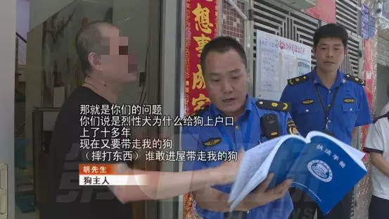 在對狗進(jìn)行暫扣,還是狗主人自行處理的問題上,雙方各不讓步。胡先生的兒子打電話過來,事情出現(xiàn)了轉(zhuǎn)機。同意執(zhí)法人員把狗帶走,但胡先生必須全程陪同,觀察狗在暫扣期間是否受到了正常對待。