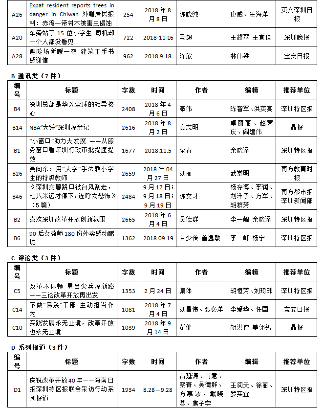 第26屆(2018年度)深圳新聞獎(jiǎng)獲獎(jiǎng)作品目錄