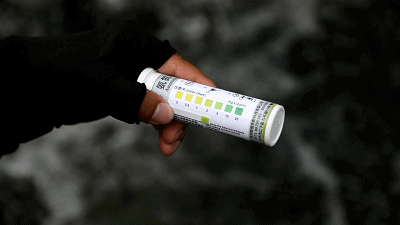 取水、使用試紙、觀察色卡