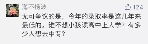 所以,初中生家長無疑是最焦慮的??疾簧瞎k普高,是多花點(diǎn)錢去民辦普高還是進(jìn)入職高抑或是是輟學(xué)進(jìn)入社會,這是一個問題。雖然說好的職高也算不錯的出路,但好的職高也不多啊,更何況很多家長沒法接受職高,在很多家中眼中,讀職高就是混日子的;難道初中畢業(yè)年紀(jì)輕輕就要進(jìn)入社會嘛?絕大部分家長肯定不希望是這樣的,但殘酷的事實擺在那兒,于是他們焦慮著。