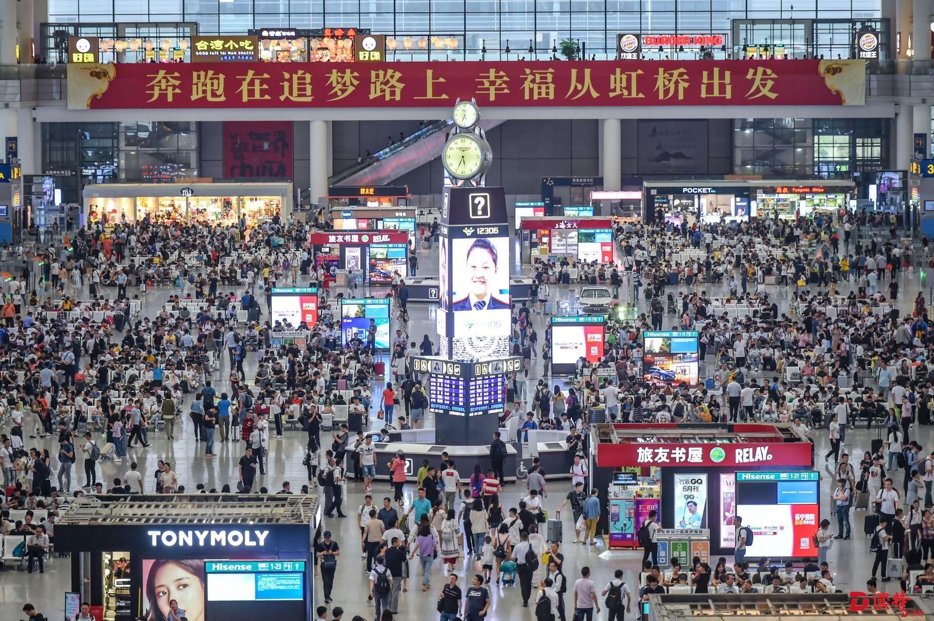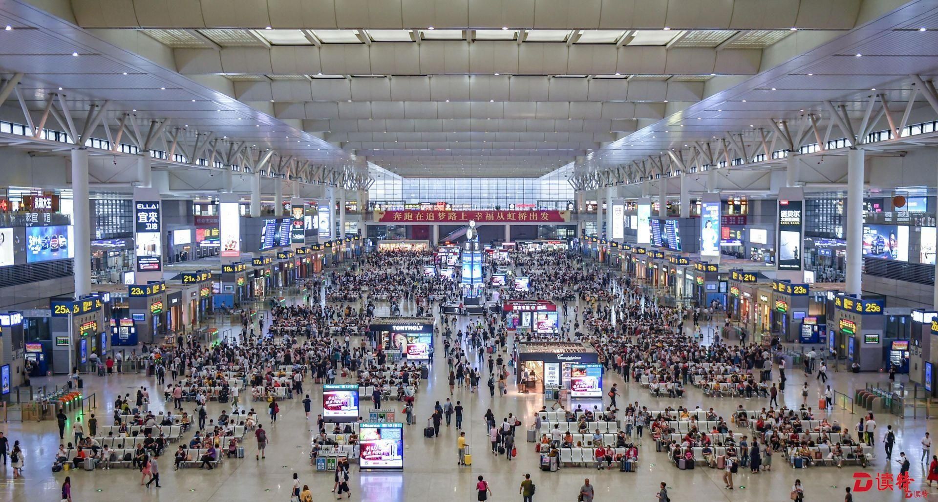 虹橋站是京滬、滬寧、滬杭三線高鐵的交會點(diǎn),日均到發(fā)旅客40萬人次。