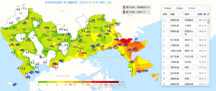 據(jù)悉,今年第7號(hào)臺(tái)風(fēng)“韋帕”(熱帶風(fēng)暴級(jí))17時(shí)位于我市西南方約422公里,中心最大風(fēng)力8級(jí)(20米/秒)。目前,我市近岸最大浪高為2.8米,出現(xiàn)在大鵬灣海域;沿海最大實(shí)測(cè)潮位為49厘米,出現(xiàn)在鹽田驗(yàn)潮站。