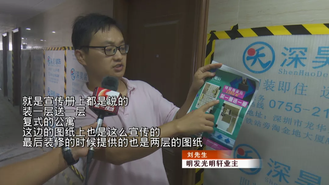 而開發(fā)商回應(yīng):裝一層送一層行業(yè)內(nèi)均是如此宣傳