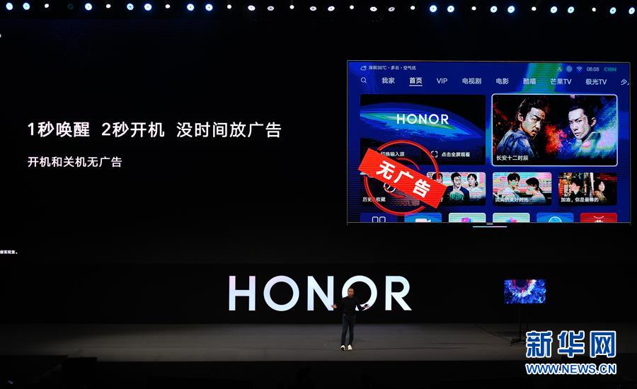 8月10日,華為榮耀總裁趙明在發(fā)布會上介紹榮耀智慧屏。新華社記者梁旭攝