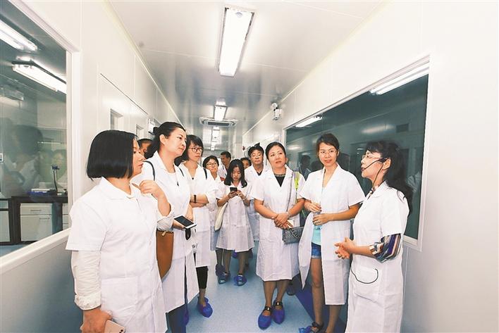 2018年,王多加(右一)在深圳市農(nóng)產(chǎn)品質(zhì)量安全檢驗檢測中心的“實驗室開放日”為市民代表介紹實驗室的檢測工作。