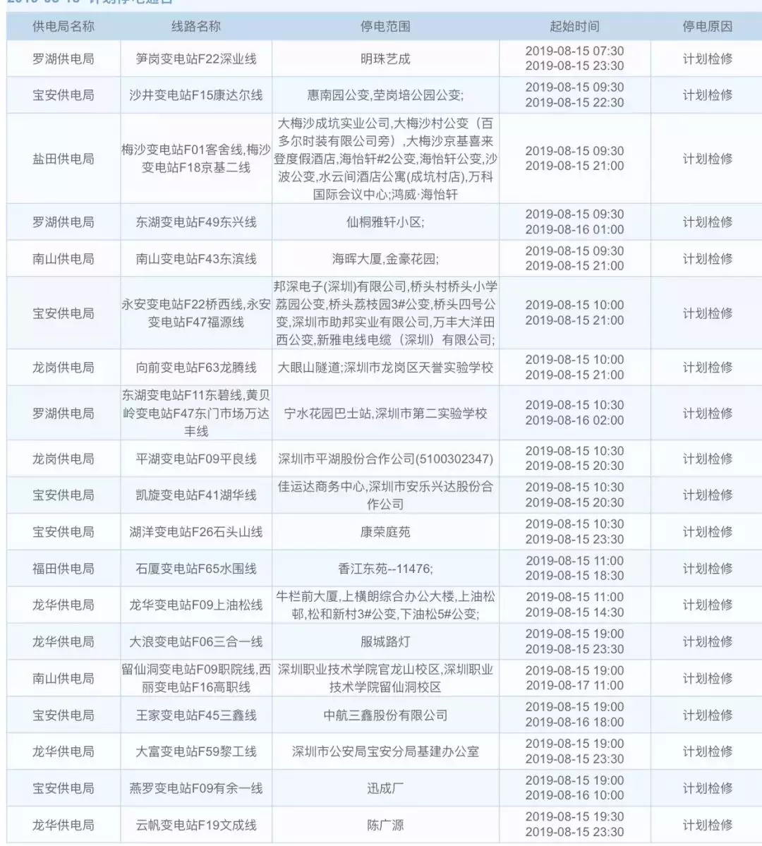 據(jù)中國(guó)南方電網(wǎng)信息,接下來(lái)這幾天深圳這些地方計(jì)劃停電,快看看有沒(méi)有你們家。