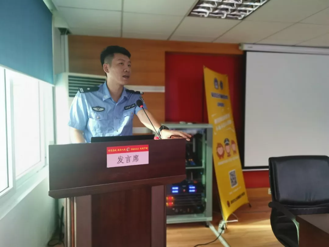 為夯實優(yōu)秀反詐人才儲備,提高轄區(qū)“藍(lán)馬甲”素質(zhì)。17時,福田區(qū)反詐騙教育學(xué)院為南園派出所轄區(qū)內(nèi)100余名“藍(lán)馬甲”進行培訓(xùn)。培訓(xùn)講師為深圳市公安局福田分局反詐民警講師莊志仲。莊警官作為2019年福田區(qū)“反詐大比武”冠軍,對如何在較短時間內(nèi)宣講反詐要點有著獨到的心得。他從自身宣講經(jīng)驗出發(fā),將宣講要點一一為學(xué)員們進行剖析。