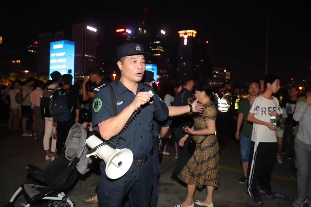 “注意安全,不要擁擠,照顧好老人和小孩。”某廣場(chǎng)擁擠的人群中,福田公安分局機(jī)動(dòng)訓(xùn)練大隊(duì)副大隊(duì)長(zhǎng)黃裕青拿著大喇叭喊道。他的臉熱得通紅,汗珠大顆大顆地往下掉,但卻始終沒停下巡邏的腳步。嗓子沙啞了,他便喝口水潤(rùn)潤(rùn),繼續(xù)在人群中穿梭,在維護(hù)秩序的同時(shí),為有需要的人提供幫助。
